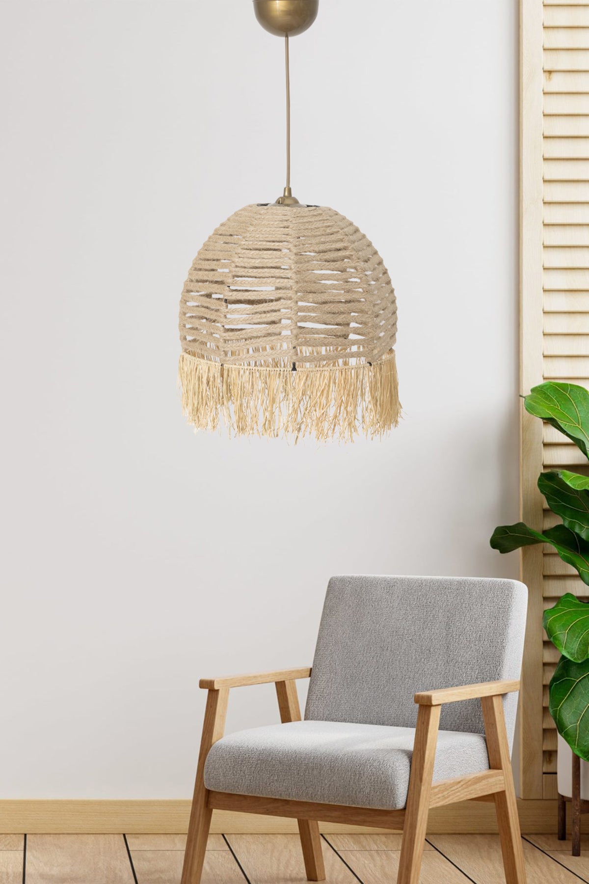 Halo Metal Detaylı Hasır Bohem Avize 9091