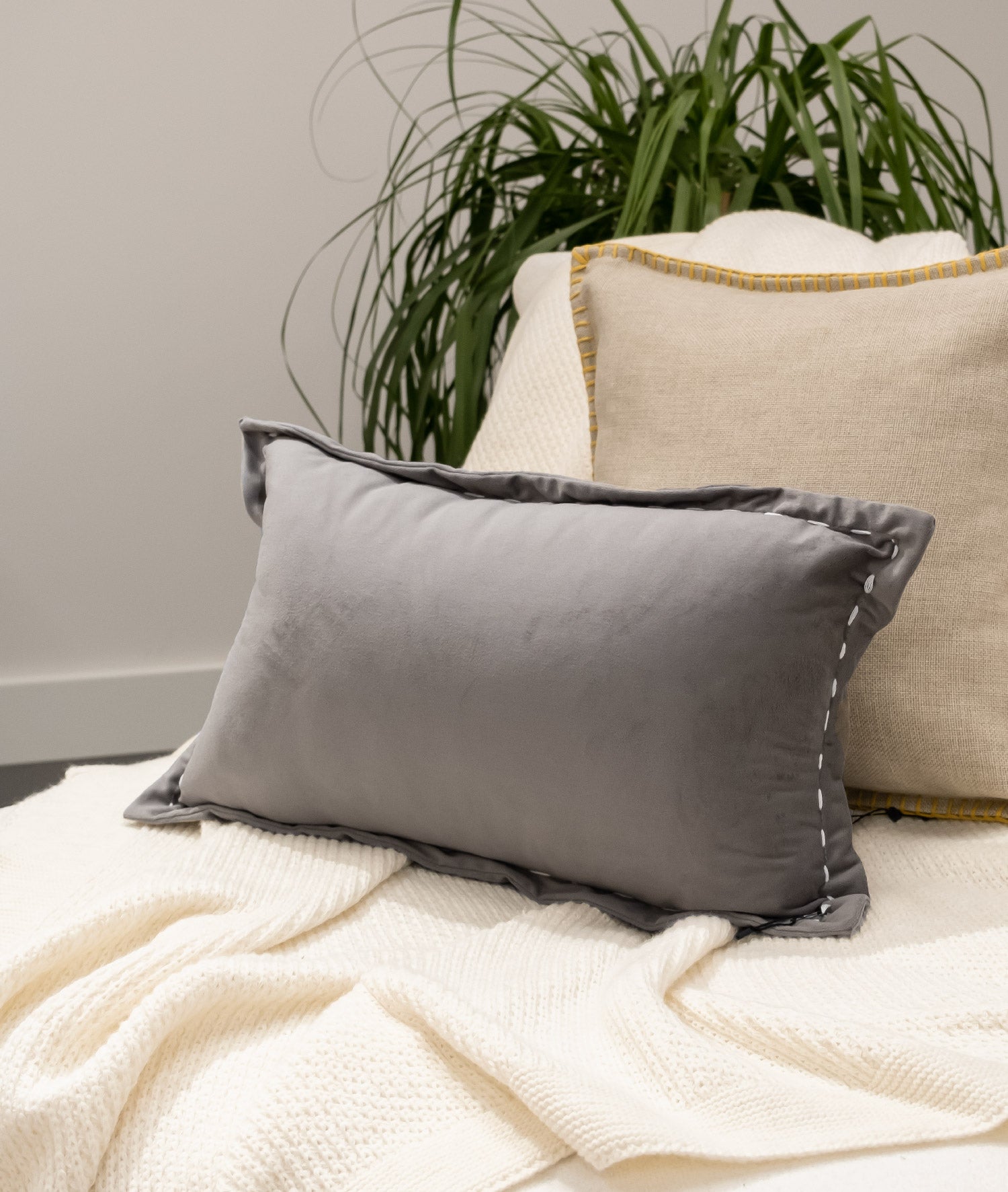 - Doğal Antrasit tonlu ve lüks kadife dokulu bu şık yastık, 30x50 cm boyutunda kullanışlı bir şekilde tasarlanmıştır.