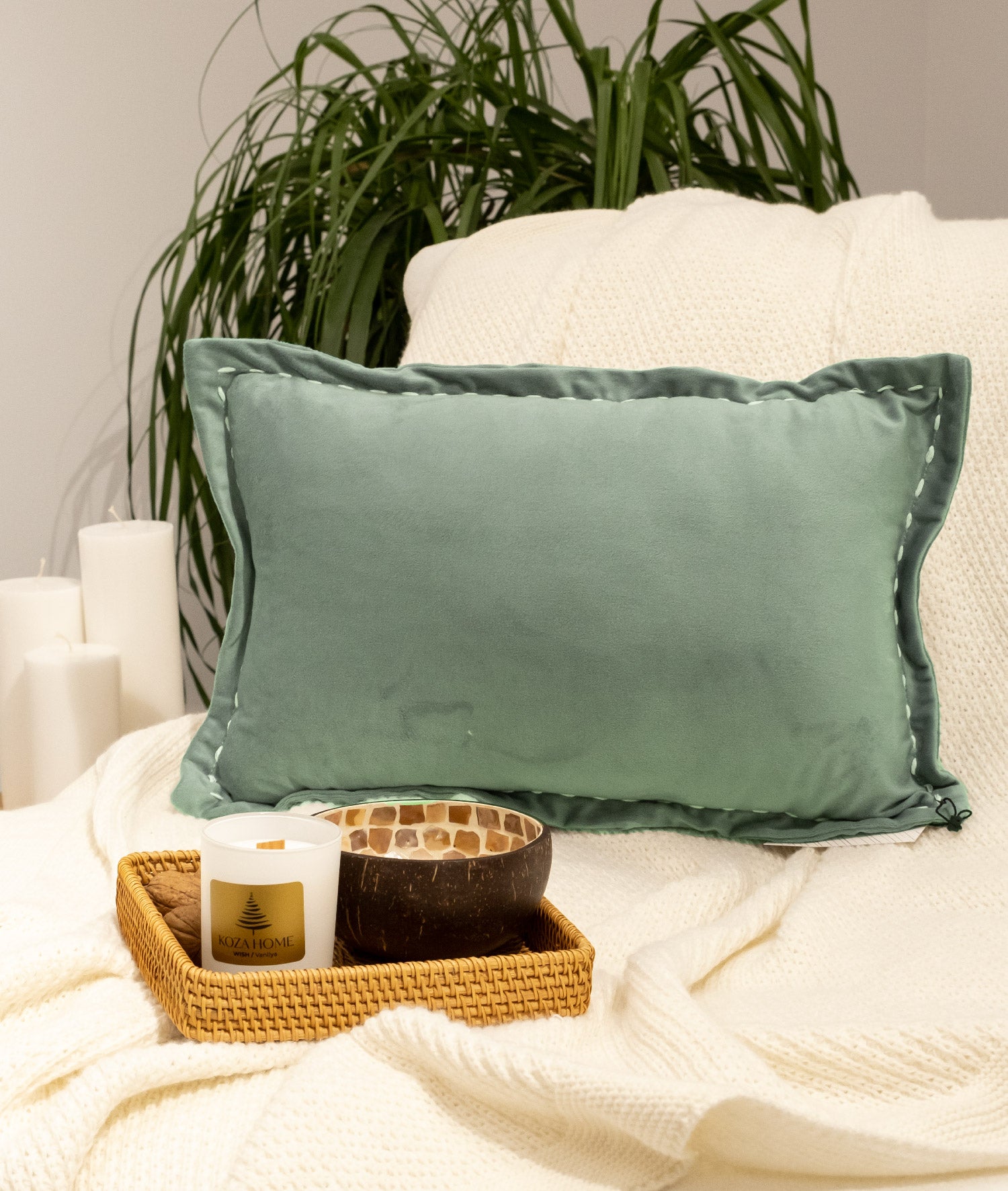 - Doğal Yeşil tonlu ve lüks kadife dokulu bu şık yastık, 30x50 cm boyutunda kullanışlı bir şekilde tasarlanmıştır.