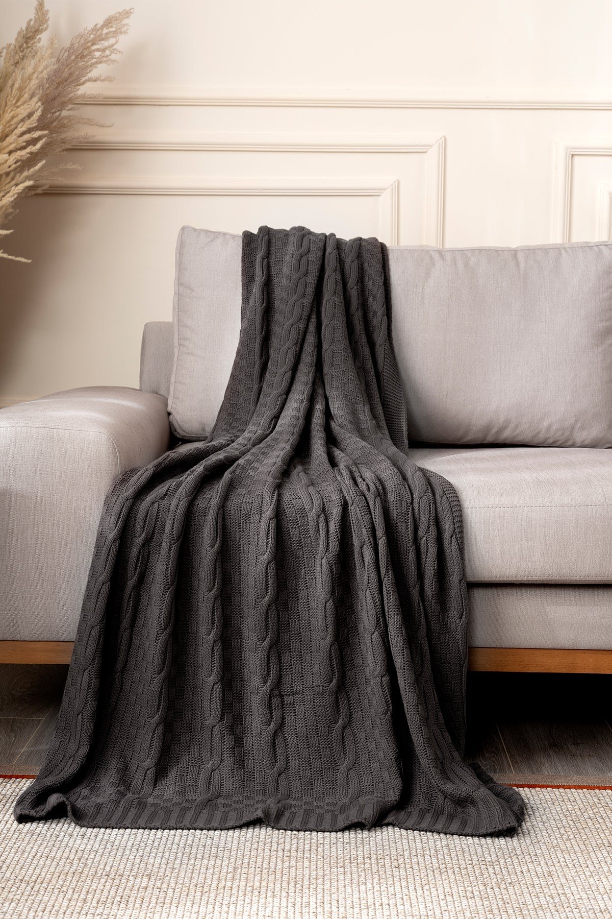 Mendi Gri Akrilik Throw Tv Battaniyesi 130X170 2533