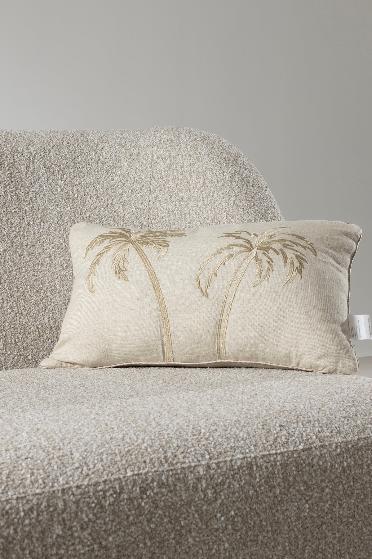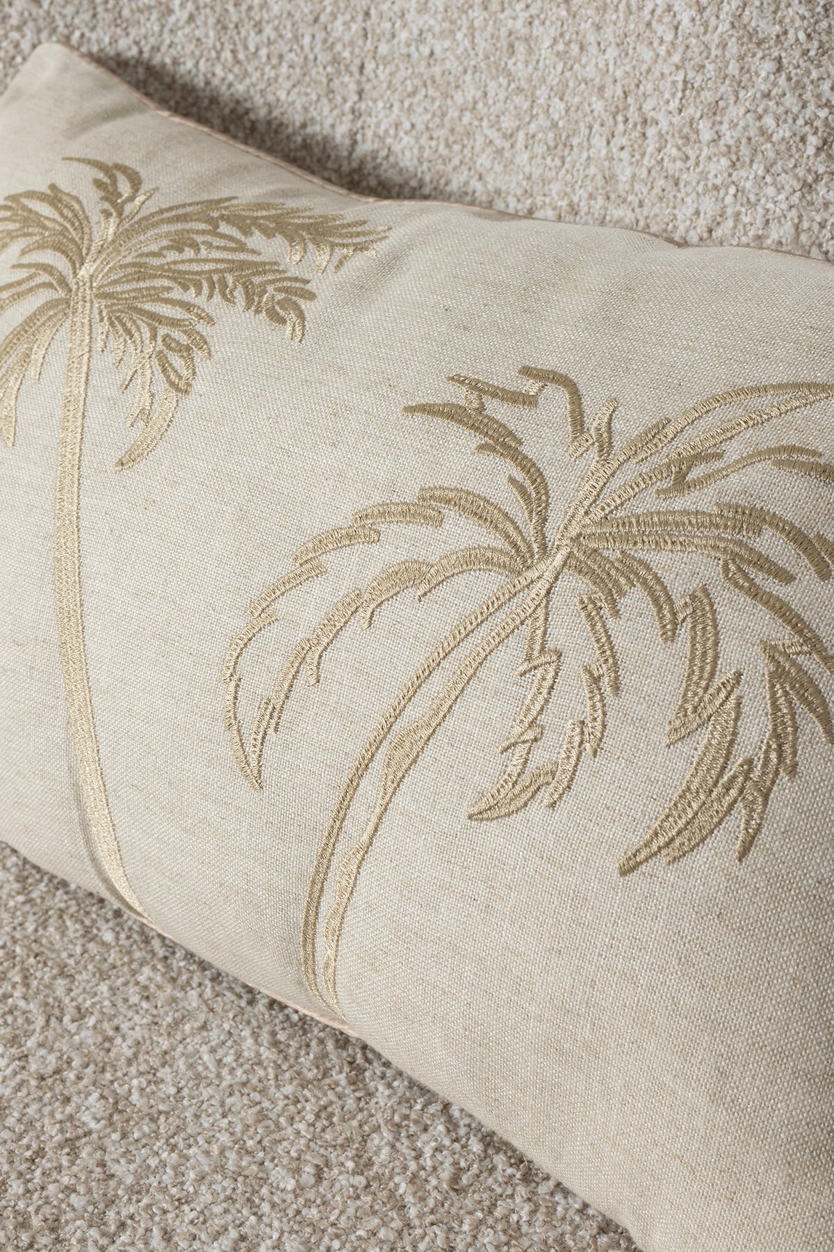 Pure Bej Palmiye Detaylı Dekoratif Boncuk Elyaf İç Dolgulu Kırlent 30X50 4842