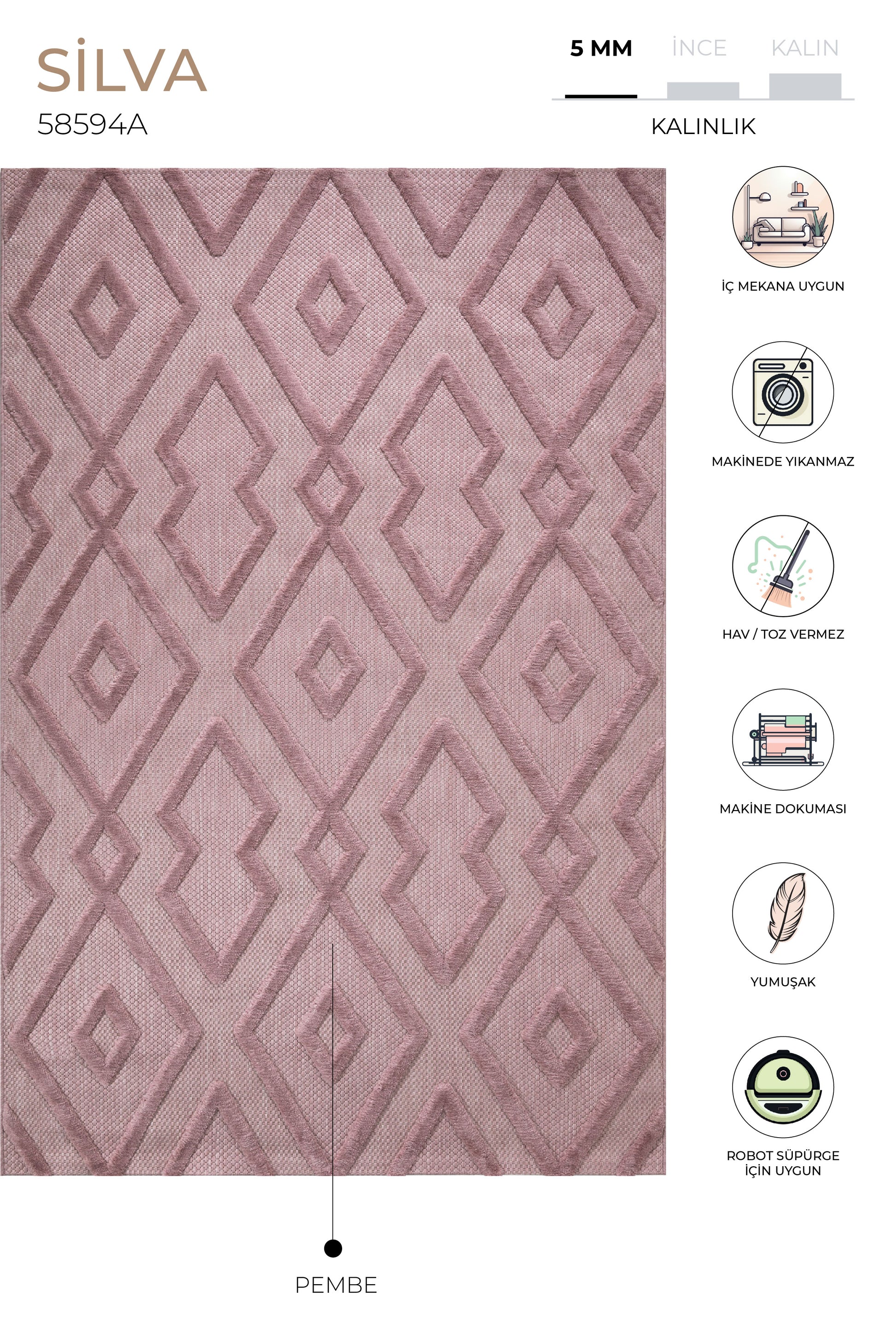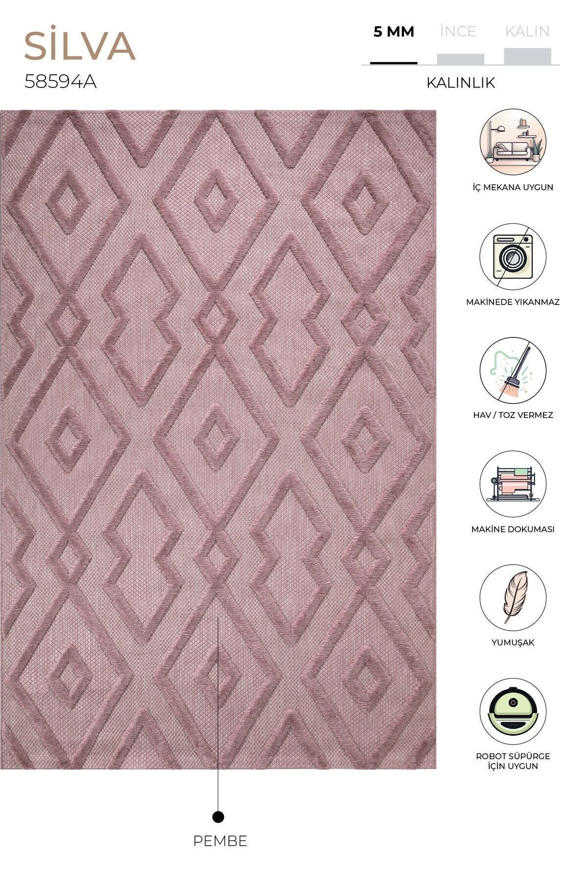 Silva Pembe Temizlenebilir Halı 58594A